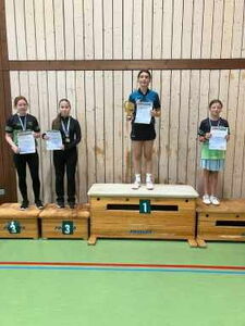 Titel Nr. 3 und 4 für den Irscher Verein sicherte sich Anna-Lena Stemper in der Mädchen-U15-Klasse. Im Einzel war es allerdings ein sehr hartes Stück Arbeit gegen Emma Herz vom FC Könen, am Ende ein 3:2-Finalsieg, im Doppel zusammen mit Emma Herz war es ein ungefährdeter Erfolg.