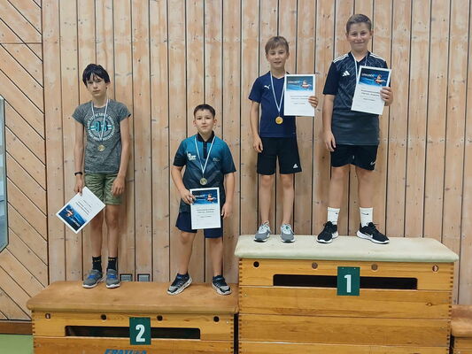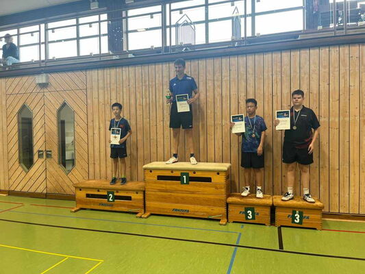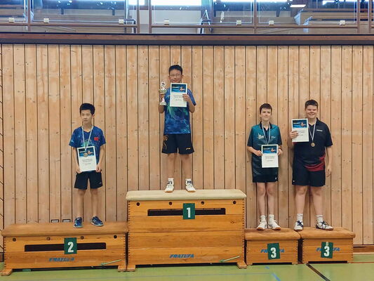 Am Sonntag waren dann die Mädchen und die Jungen U15 am Start. Bei den Mädchen sicherte sich Anna-Lena Stemper den Titel, hier fehlte leider auch die Titelverteidigerin. Bei den Jungen U15 war das Rennen total offen; dass aber am Ende Chenrui Kang, immerhin verletzungsbedingt erst wieder seit Trainingsbeginn in der Halle, das Turnier gewinnen konnte, war doch eine Überraschung. Und auch im Doppel waren mit Niklas Becker/Artem Kyrylash und Ben Weber/Nathanael Greweldinger eher zwei Außenseiterdoppel im Finale, das dann die erstgenannte Kombination gewann.