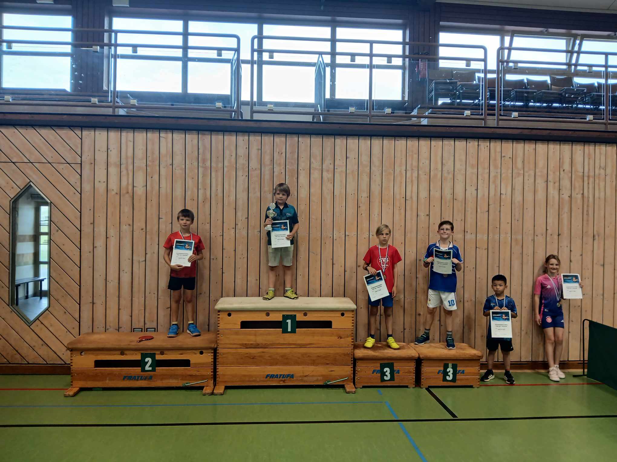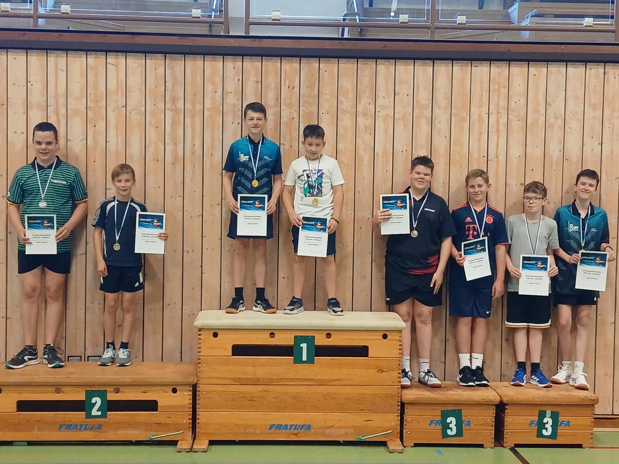 Den Auftakt machten die U9- und U11-Spieler/-Spielerinnen; und bei den U11 war in Abwesenheit des Titelverteidigers Malte Miska der Favorit. Dies bestätigte er dann auch mit einem souveränen Turniererfolg. Bei den U9-Kindern setzte sich der jüngste und auch kleinste Teilnehmer durch, Chenyü Kang, der sicher eine Zukunft im Tischtennis hat, wenn er dabeibleibt. Er zeigte auch gegen die größeren Spieler sein Potential, da darf man sehr gespannt sein.